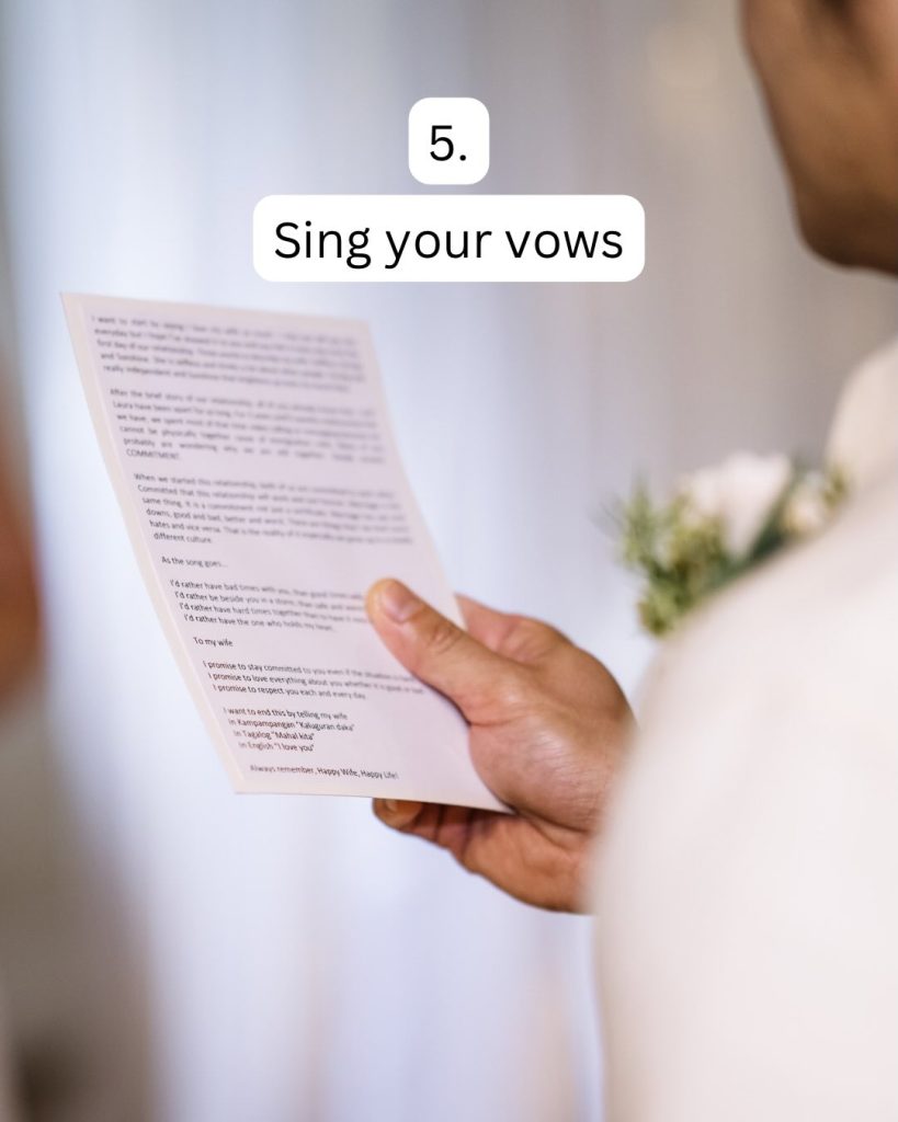 Sing your vows! My husband sung a portion of his vows to me and it was so incredible. You don’t have to sing but take this as your sign to say your vows how you want to whether that’s in sign language, foreign language or even in written word, it’s up to you.